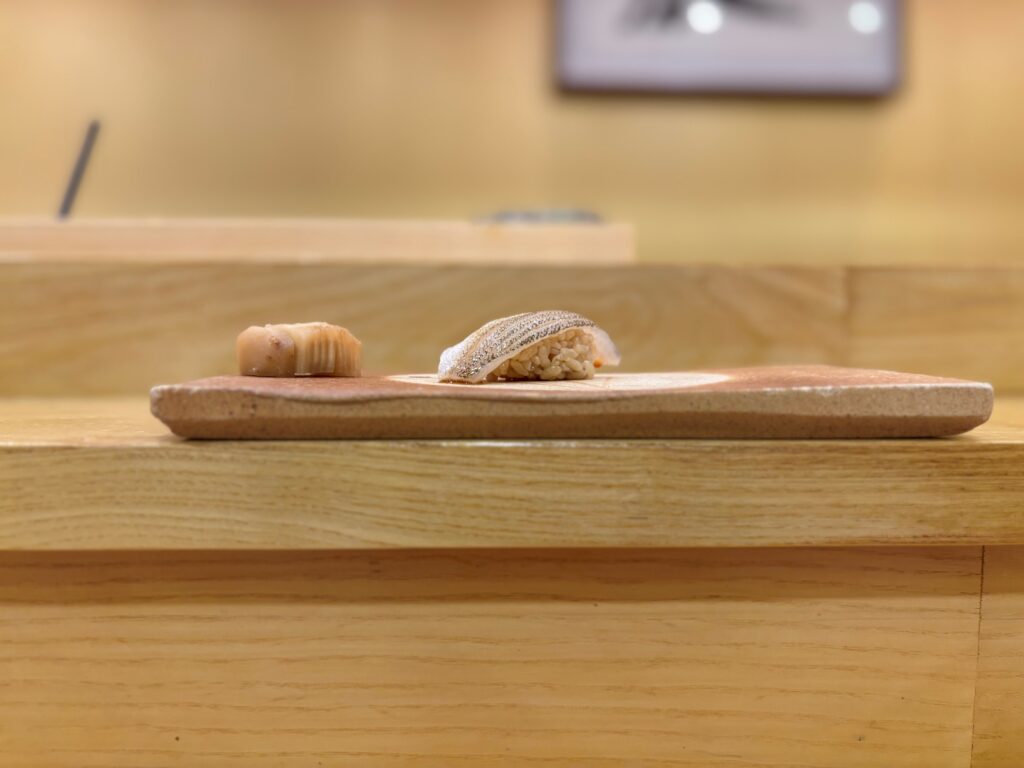 Is there a prettier hikarimono than the Kohada or its younger buddy, Shinko (or older friends Nakazumi or Konoshiro)? It’s delicious but not overpowering, making it a perfect “entry-level” tane for someone looking to expand their sushi horizons beyond the standard North American sushi fare. Beware the tiny bones that sometimes hang around.