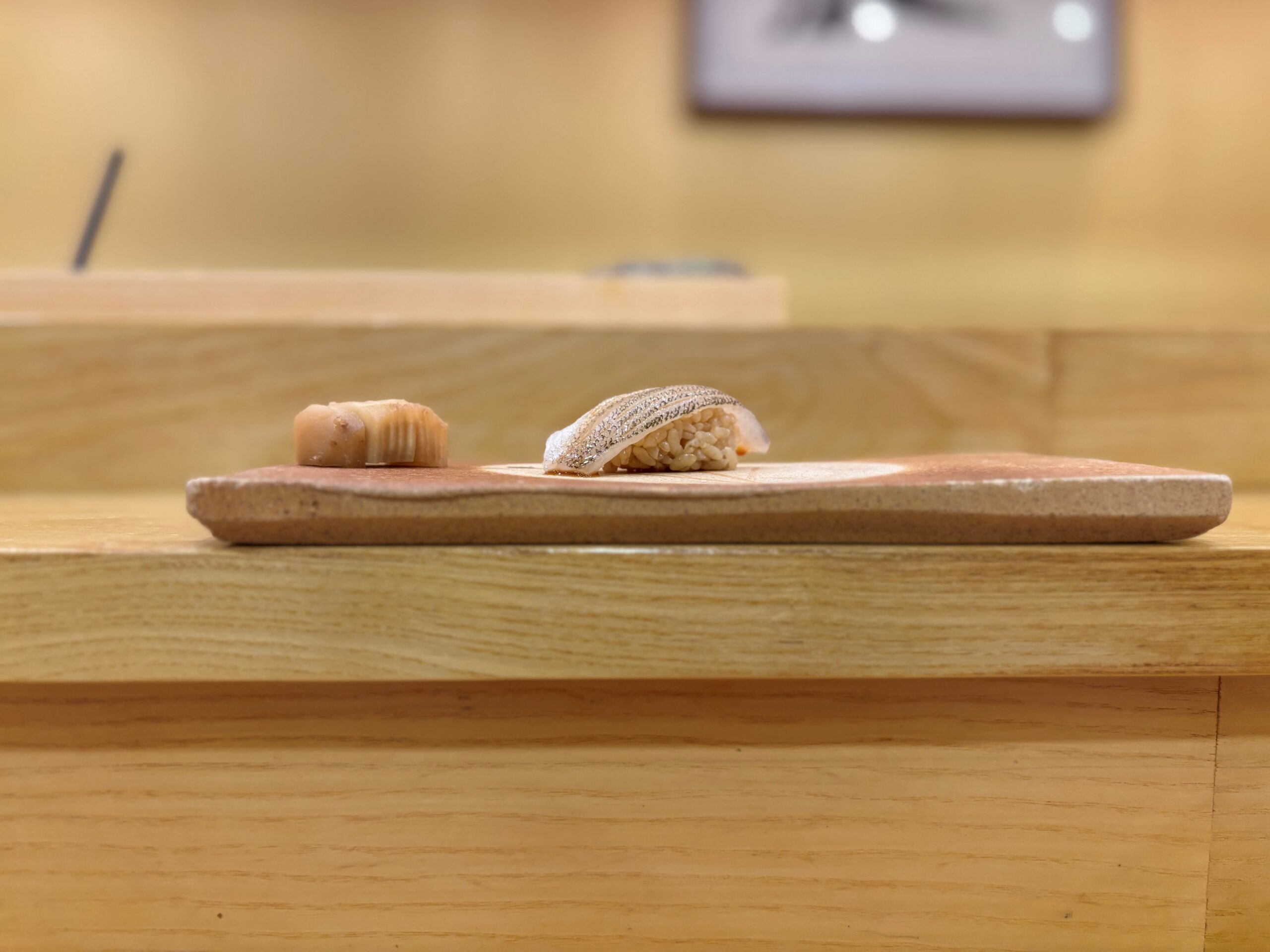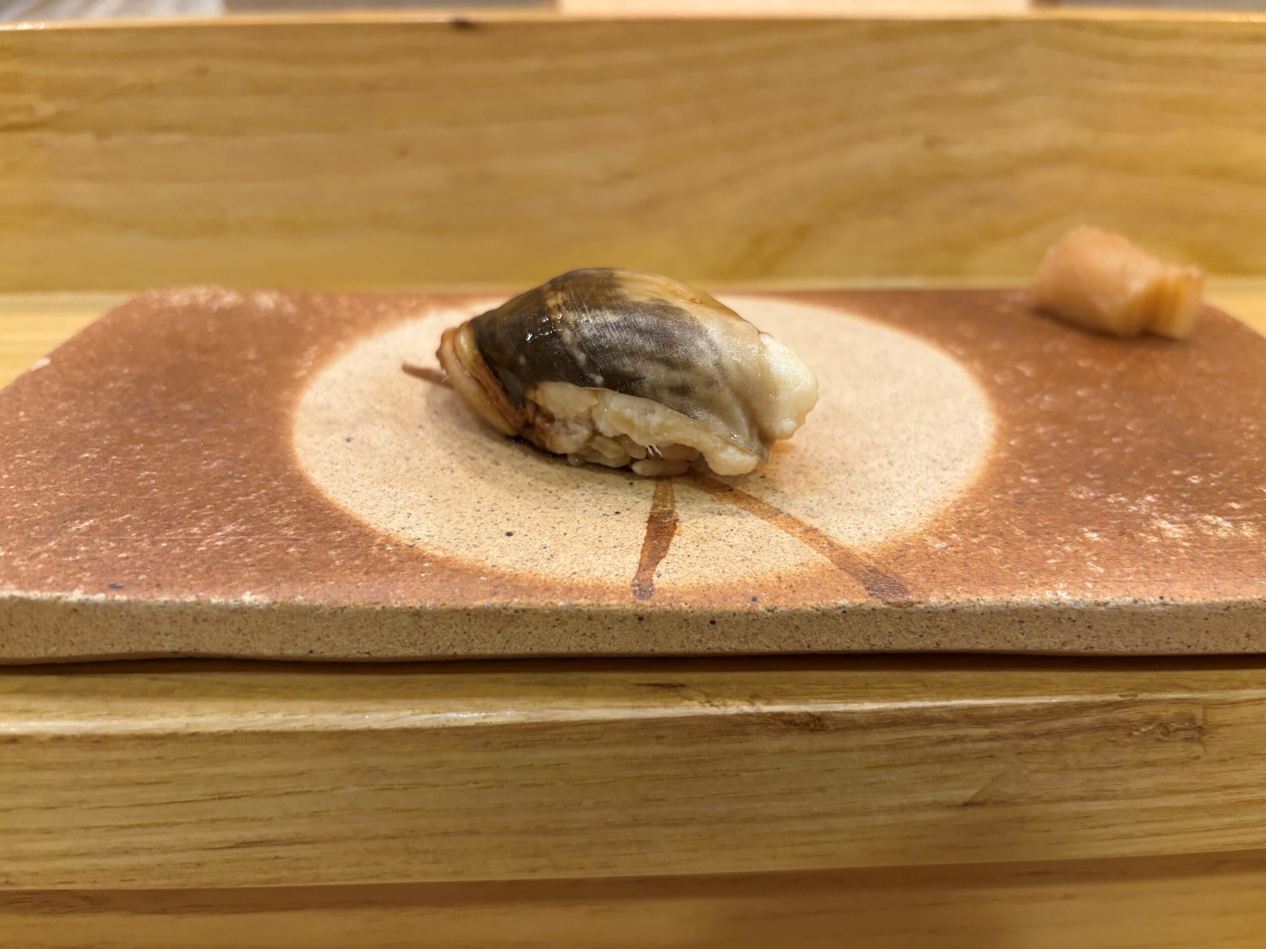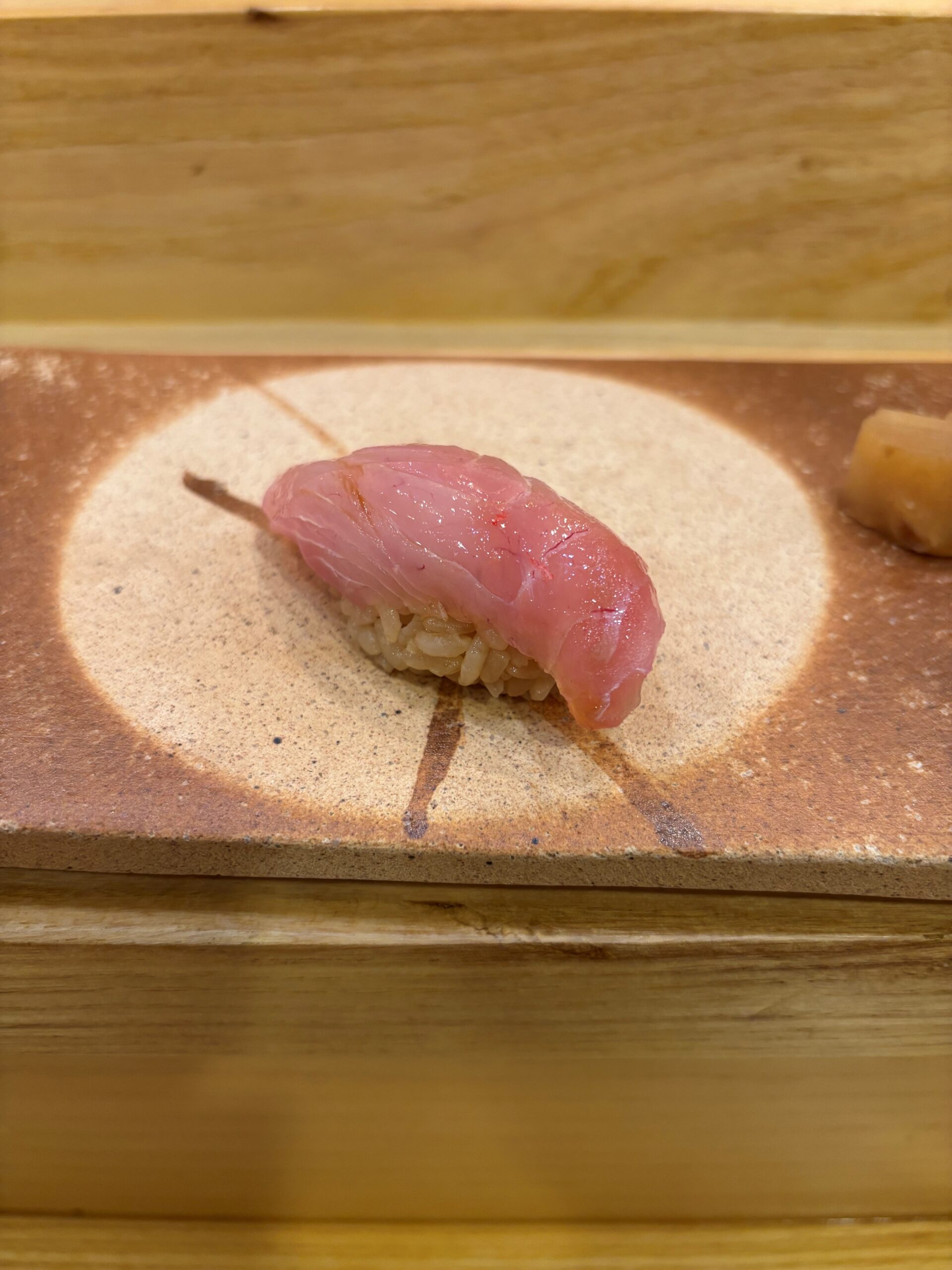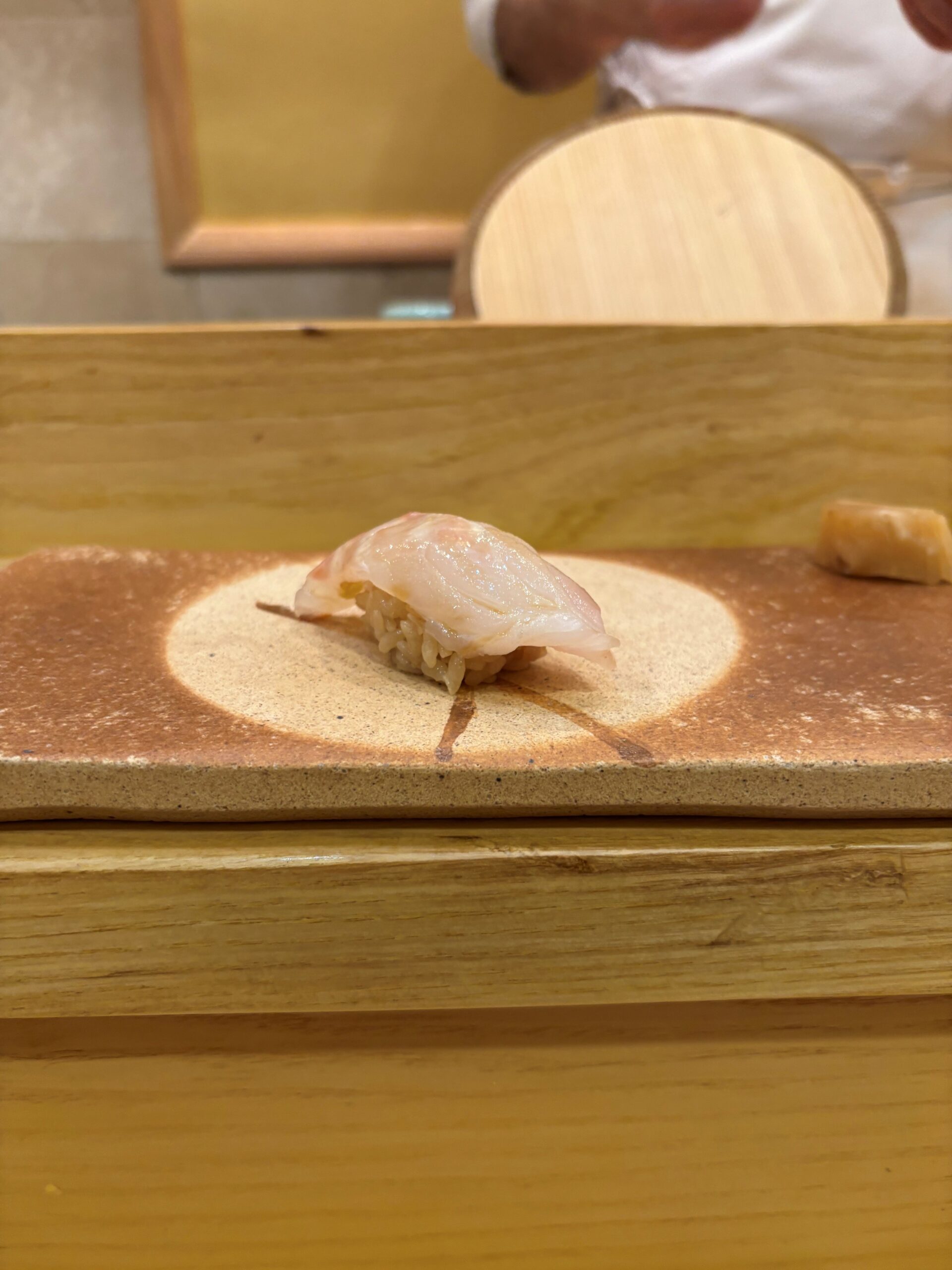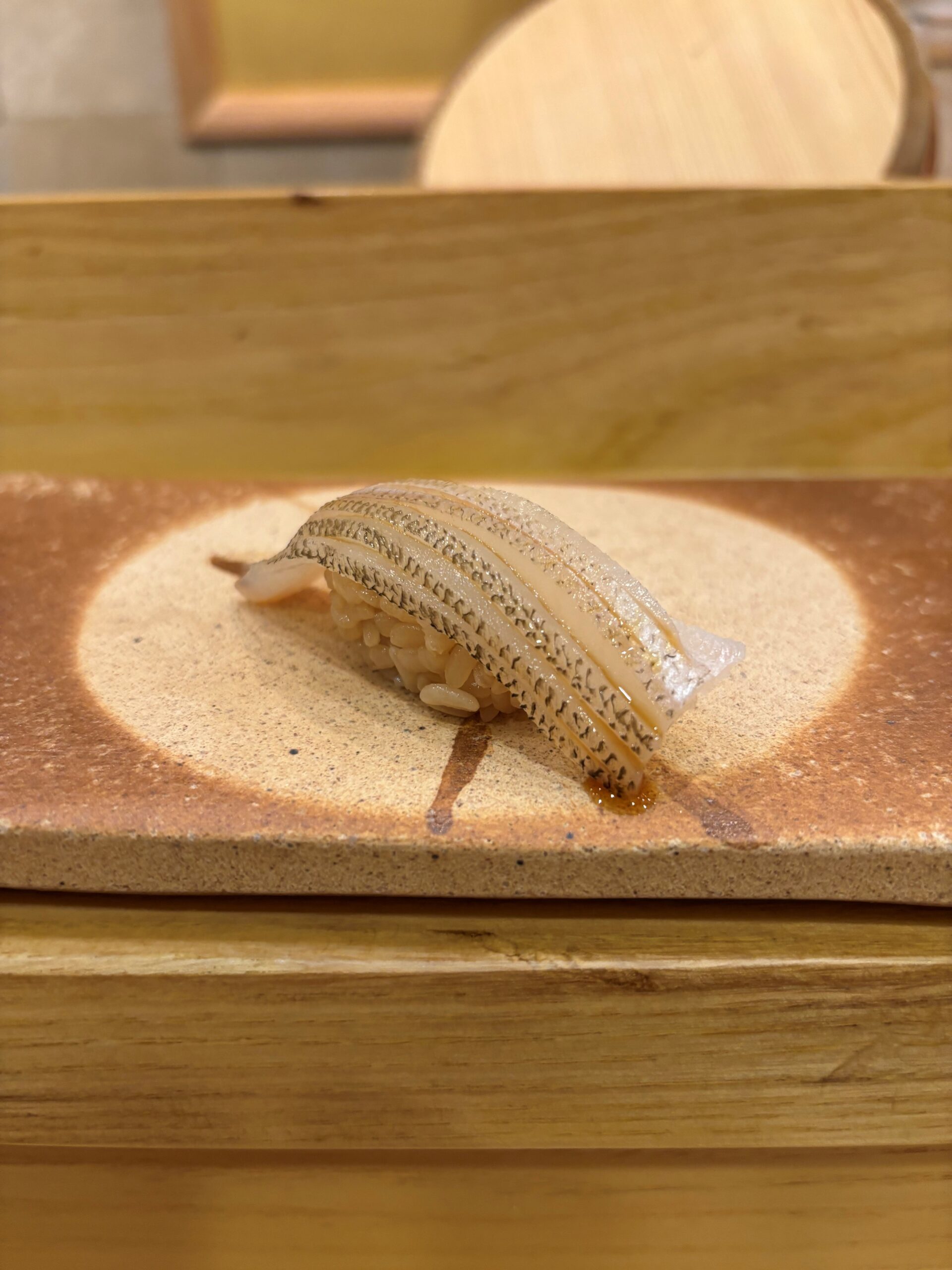 Shirakawa (white tilfefish) is a neta you won’t typically see on menus here. It is considered the rarest – and most expensive – of the Amadai types used for sushi. This came from Wakamaya bay.