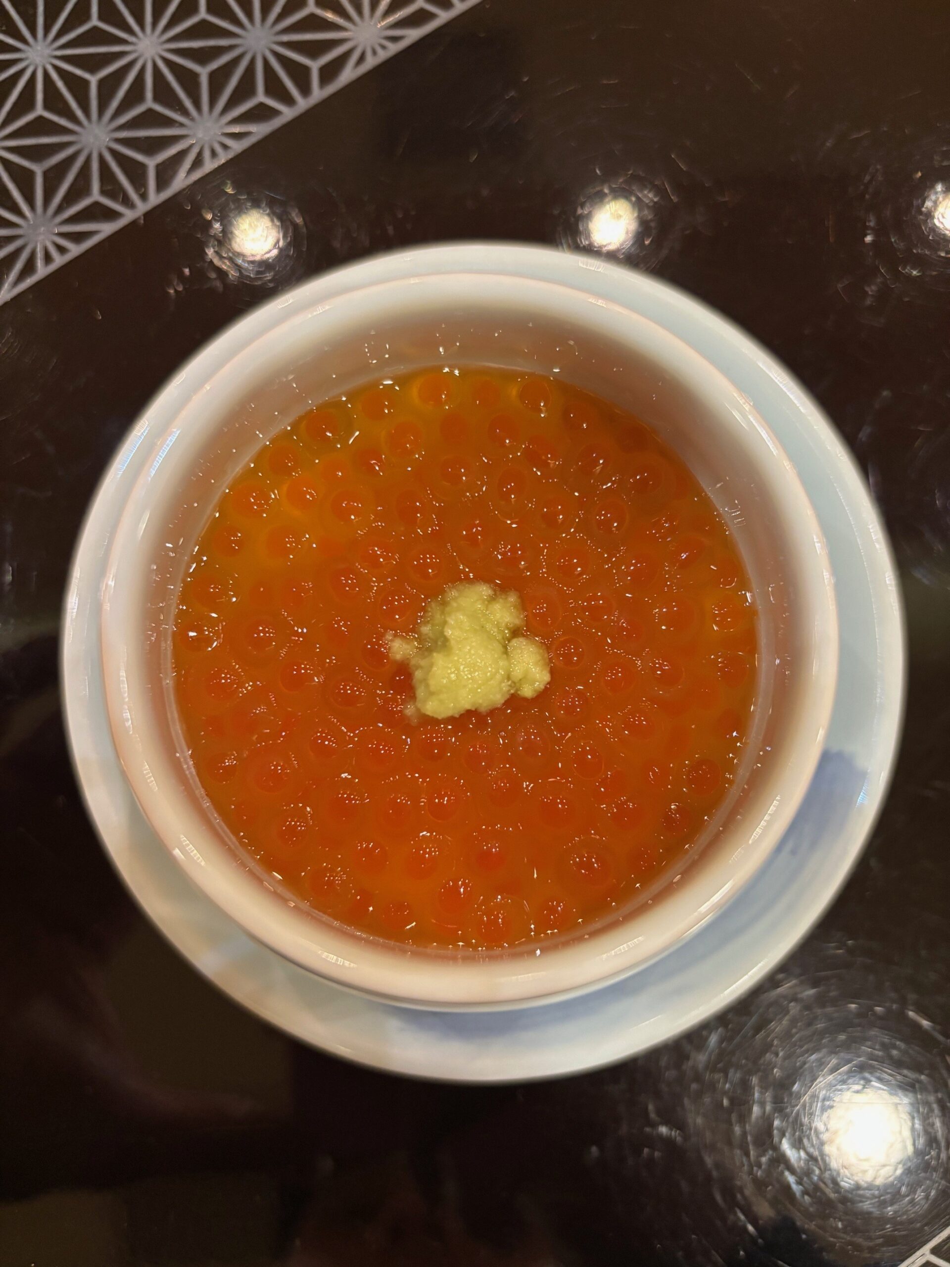 Ikura, though, tastes plenty fine when slightly cooked. In fact, Hanjuku Ikura – meaning half-cooked ikura – is a delicacy. It’s prepped quickly in a hot brine before being marinated in shoyu, sake and mirin.